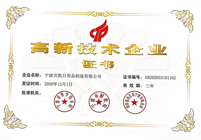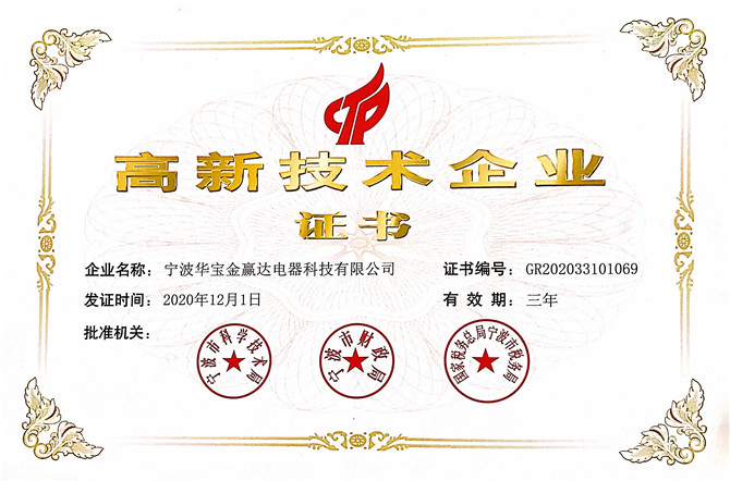 公司于近日收到由寧波市科學(xué)技術(shù)局、寧波市財政局、國家稅務(wù)總局寧波市稅務(wù)局聯(lián)合為我司旗下4家子公司:寧波國瑯機(jī)器人科技有限公司、寧波華寶百順模具制造有限公司、寧波貝凱日用品制造有限公司、寧波華寶金贏達(dá)電器科技有限公司,頒發(fā)的“高新技術(shù)企業(yè)”證書。